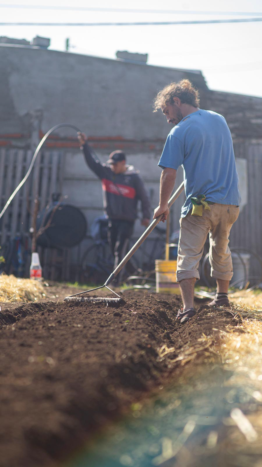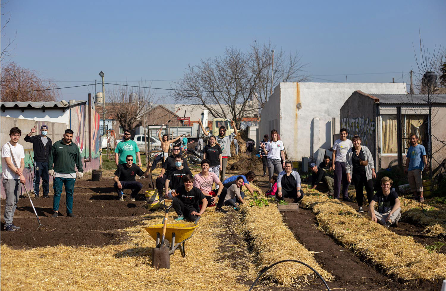 Acompañamos al Merendero “Los Ángeles” junto a la Juventud Radical, artistas y voluntarios locales a iniciar una huerta y espacio de recreación en un terreno del barrio. Se realizo el diseño e implementación del proyecto. Realizando la limpieza del espacio, el trabajo de la tierra, la confección de canteros, una zona de compost, la instalación de riego, dos murales y la plantación de hortalizas y frutales.